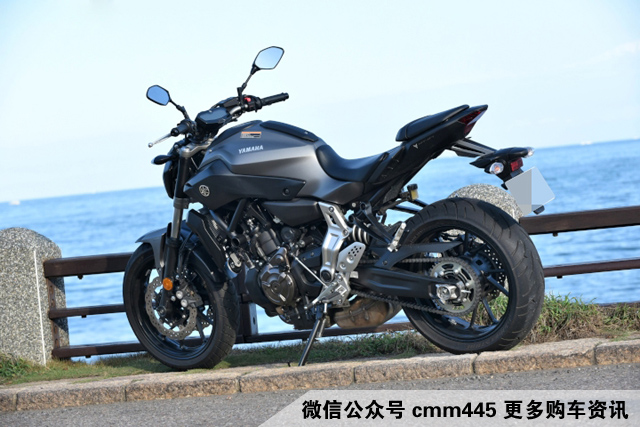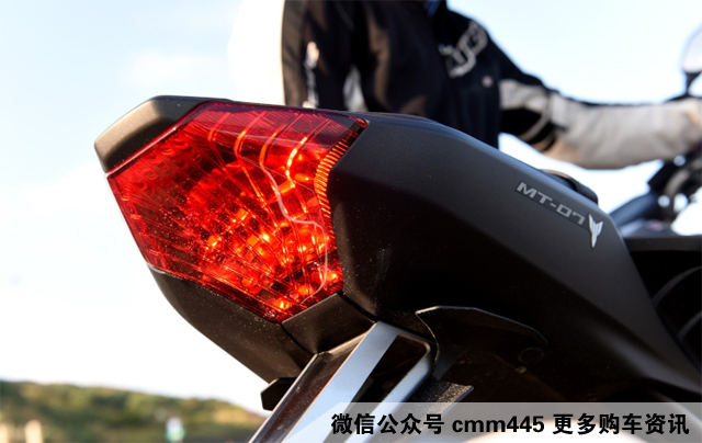 车款定位:着重于街道骑乘、玩乐的市场定位。MT-07给人第一眼印象:车体比想像中小台。官方公布的长宽高尺寸为:2085x745x1090(mm),而追求轻快加速感的原则下,车体装备重量仅182公斤,比过去YAMAHA同级车款XJ6整整轻了22%达到轻量18公斤。