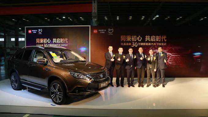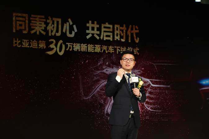 (参加发布会的比亚迪领导与第30万辆新能源车合影)