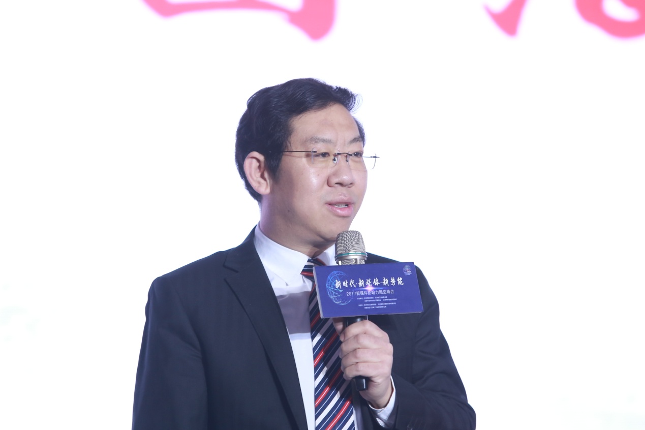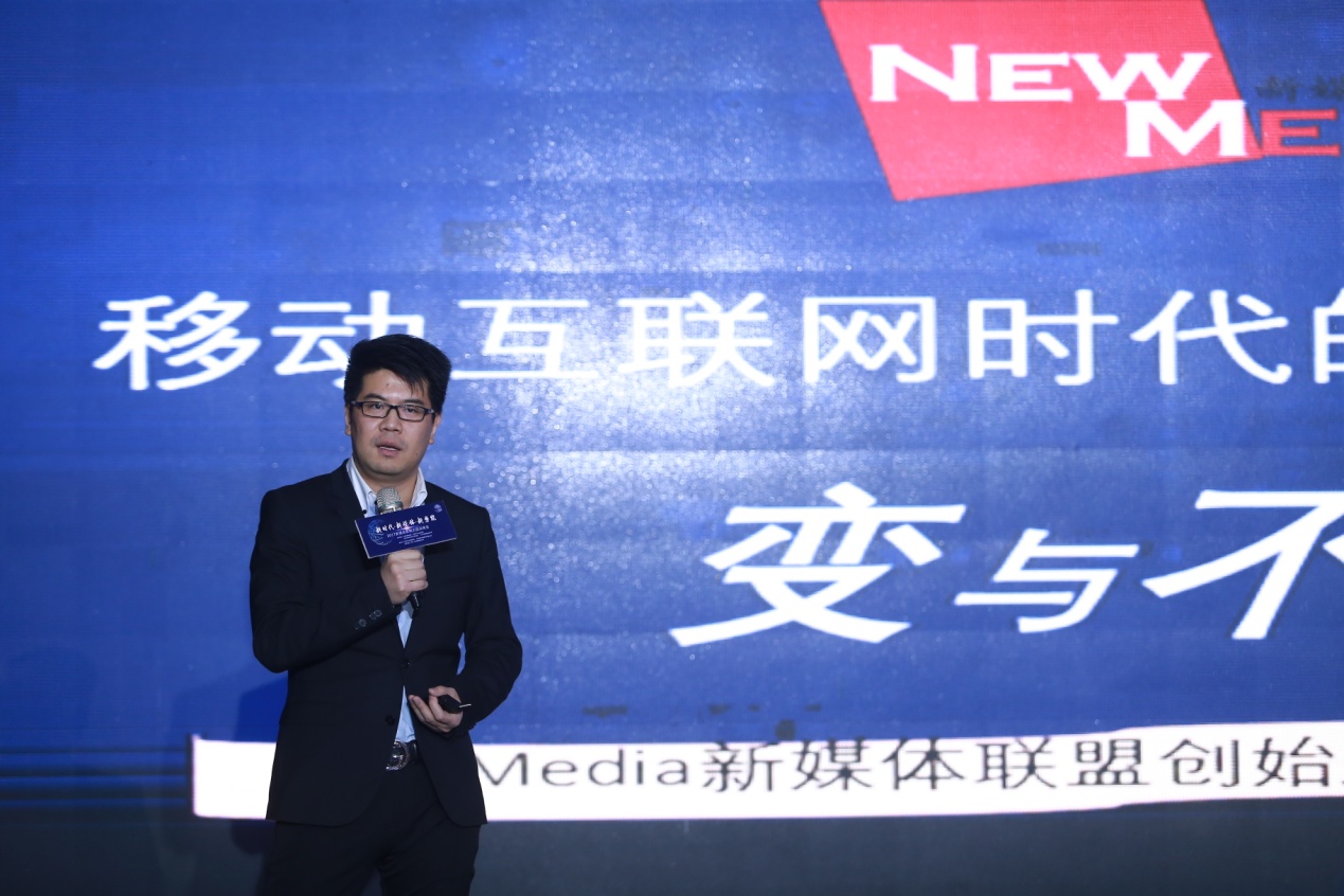 论坛上,各媒体嘉宾现场分享与演讲。有点牛集团CEO徐平以物种起源做比较,探讨了媒体的起源、新媒体的定义,以及如何做好新媒体。