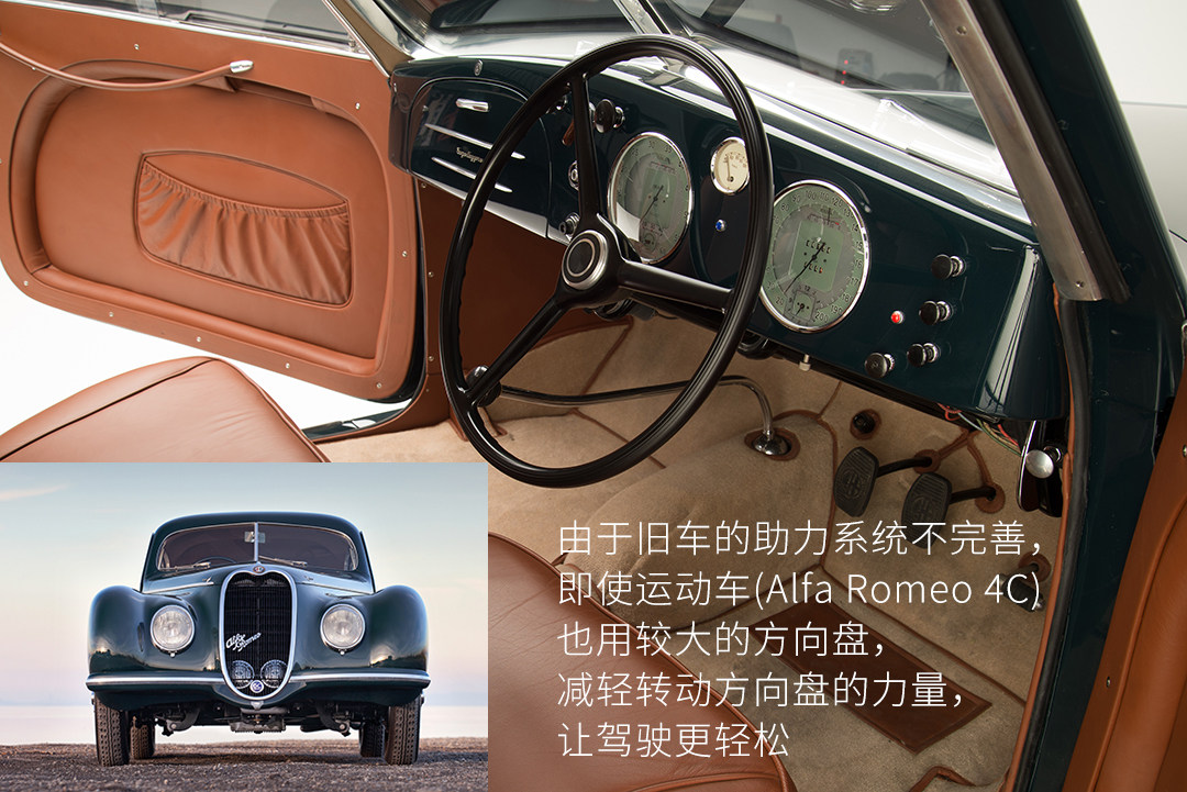 别看现在的方向盘大小挺适中的,其实最早的时候汽车的方向盘是很大的。这是由于早期的汽车根本没有助力,要拐弯纯粹靠手臂肌肉。跑起来还好,原地打方向简直是要命,女士要开车简直了。所以工程师就把方向盘做得非常大,利用更大的力臂长度获得更大的扭矩,让打方向的时候变得轻松一些。