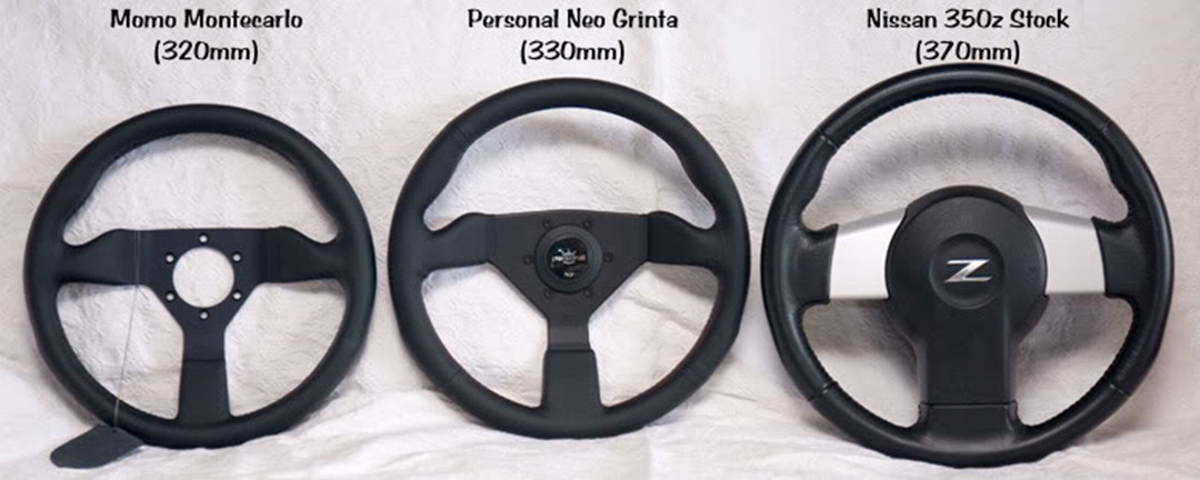 不过大方向盘还是有一些缺点的,譬如阻碍视线,而且转起来比较笨拙不灵活。随着汽车助力的慢慢进步,方向盘也开始做得越来越小。小的方向盘转起来更灵活了,操控汽车的拐弯变线等会更灵活一些。不过虽然说现代的方向盘尺寸已经比以前缩小了许多,不过也有分不同的尺寸。原装车上的方向盘直径有370mm、350mm和330mm三种最常见的规格。一些改装的方向盘有320甚至300mm的尺寸。