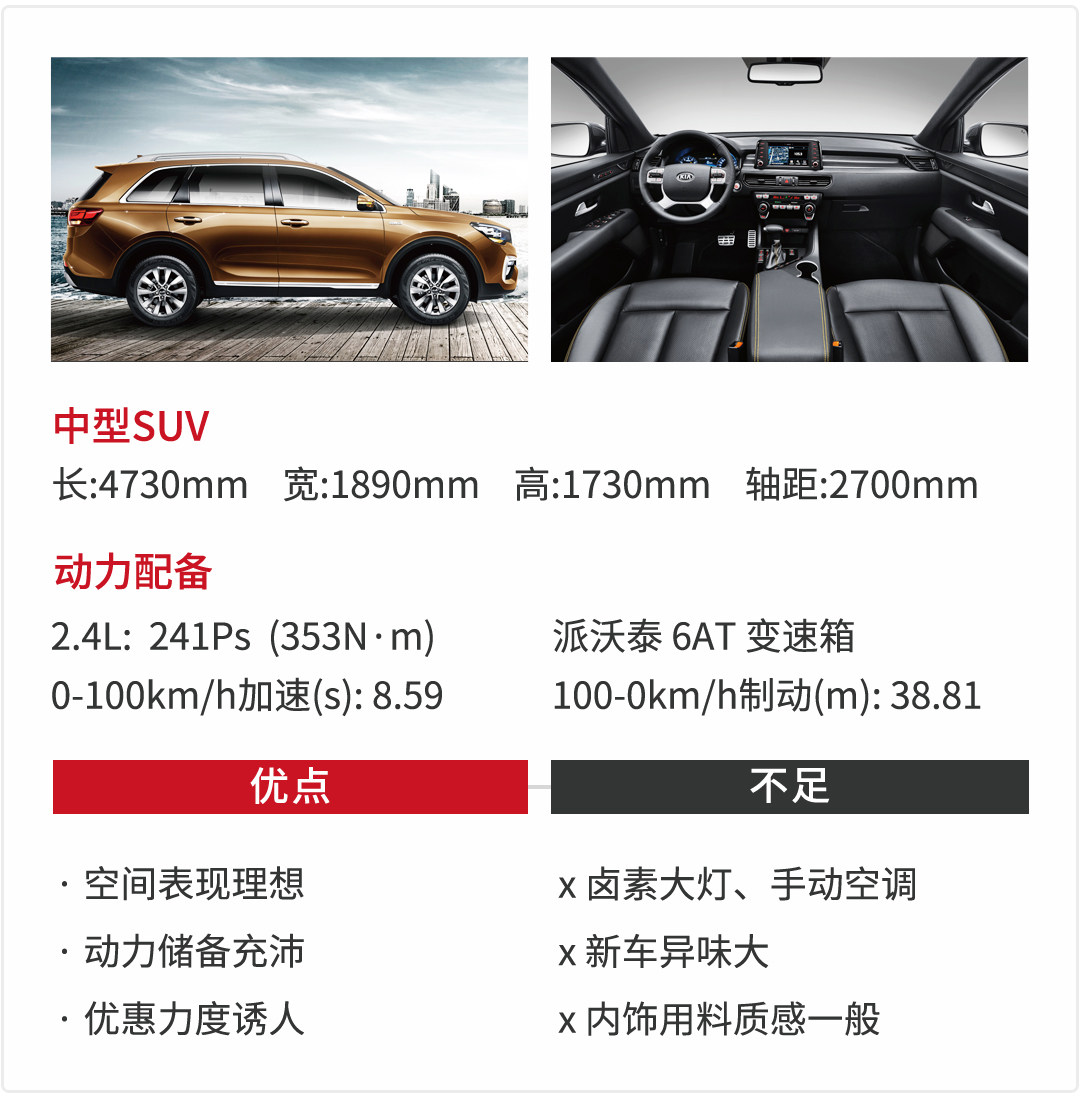 家族虎啸式中网气势非凡,基于老款索兰托平台打造的身躯也相当魁梧。Theta 2.0T发动机辅以派沃泰6AT,动力表现令人满意。高定位低售价、7座布局及较丰富的配置对比同级竞品颇具优势,只是消费者对其恼人的新车异味、廉价的内饰及品牌附加值并不买单,每月惨淡的销量足以反映。