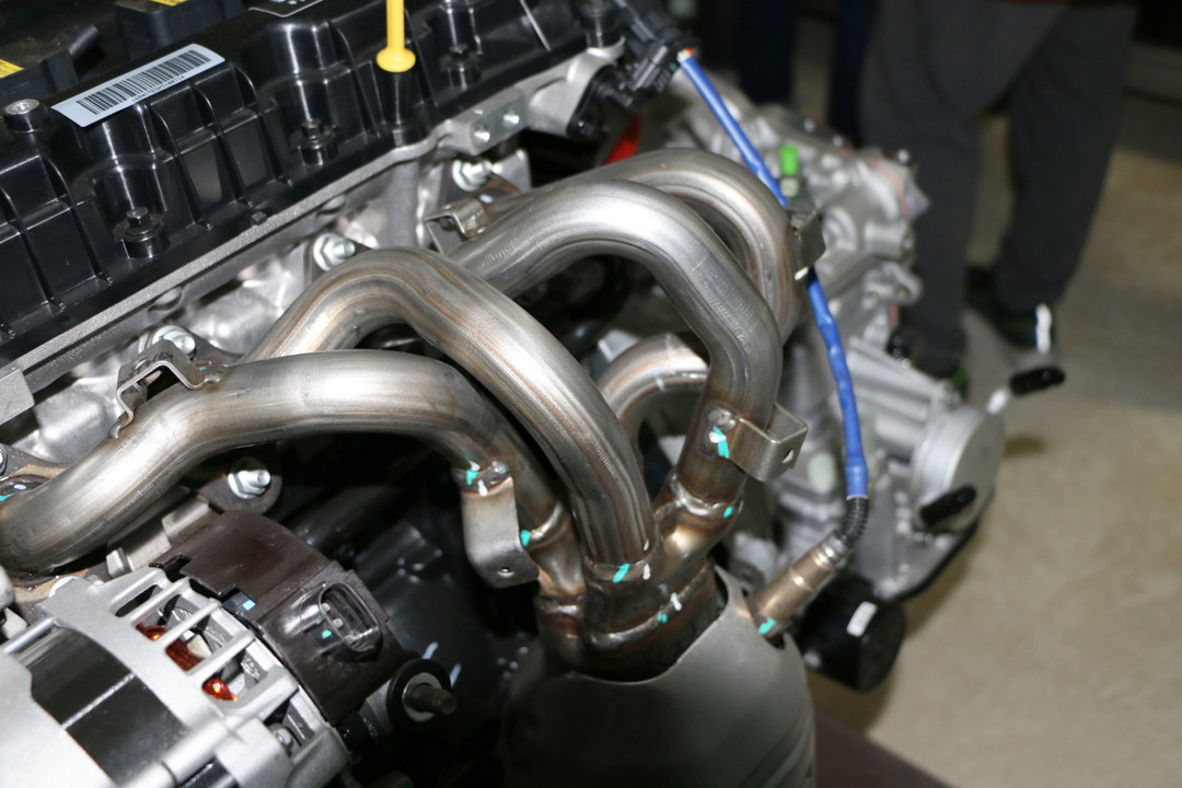 由于发动机使用阿特金森循环,排气被设计成4-2-1的形式,以减少气缸之间的影响。