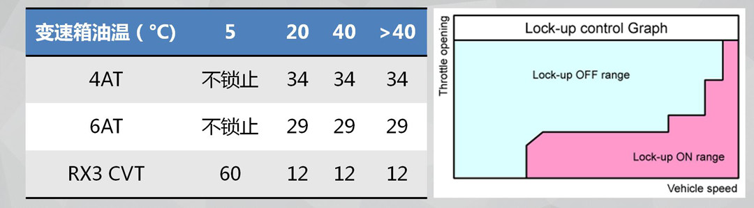 荣威RX3的液力变矩器比某品牌AT变速箱有更低的锁止车速,油温在20℃以上,在12km/h时就可以锁止,提升燃油经济性。