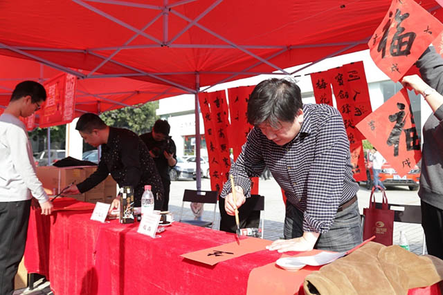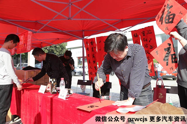 在现场,主办方还请来白云区书法协会的书法家们,给车主撰写春联及书法作品。原国家队、广东队队长王惠良先生与其儿子(原广东男子青年足球队队员,广东明星足球俱乐部副总经理) 王鸿也为活动助兴,带领花式足球队为车主们带来精彩的花式足球表演。