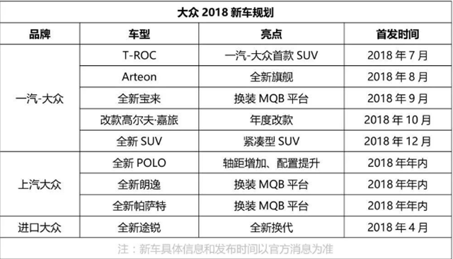 转战2018年,南北大众“圈钱”的势头依旧不停歇,纷纷透露了自家的新车计划,所以下面就给大家剧透一下大众今年都会推出哪些圈钱神器?