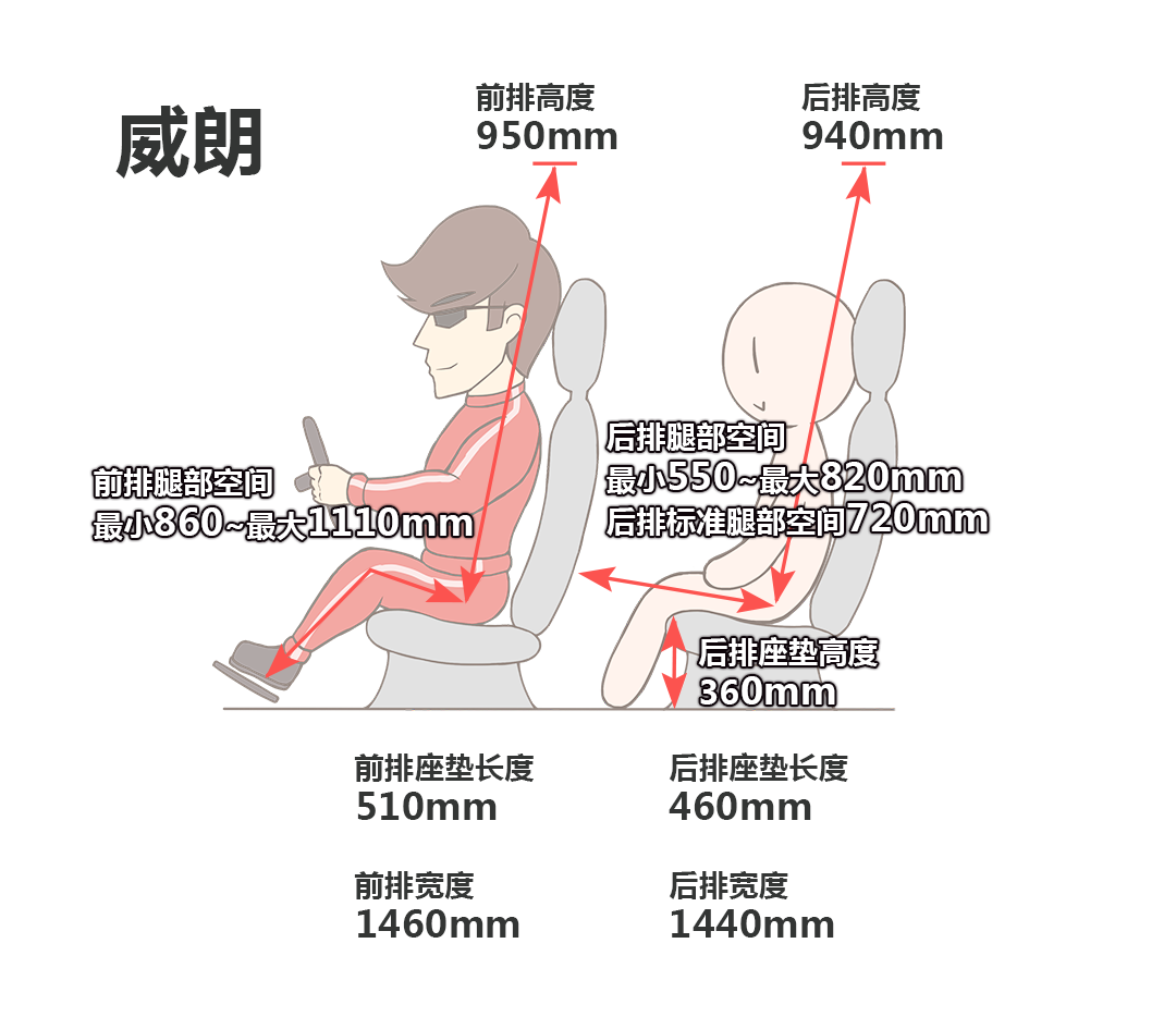 由上图可以看到,头部空间而言,威朗要比408略微高一点点。大家最关心的二排腿部空间方面,两者的表现都颇为接近,不过408还是稍胜一筹。座垫长度上,威朗的前后差距较大,更关心的是前排乘客的感受。而408则更为均衡,后排座垫比威朗稍微长一点点。在前后排的宽度上,408均做得比威朗要好。