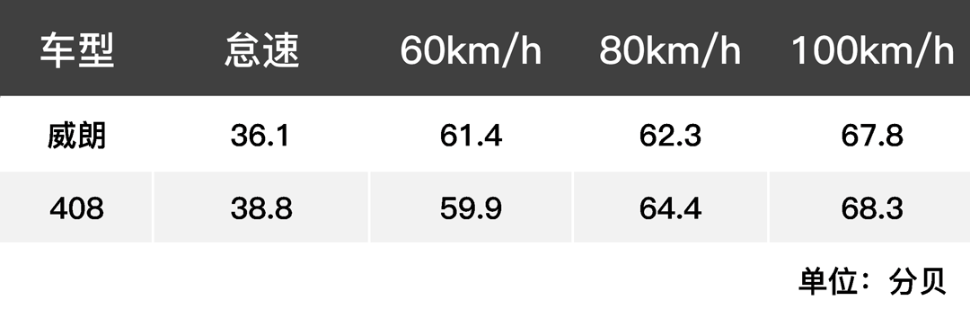 而408的表现则更为全面,中低速时的静谧性优良,特别是对于风噪的抑制尤为出色。而当转速踩到5000转左右时,发动机的噪音也能很好地被压在发动机舱里。当时速上到100km/h往上时,408的隔音就比威朗要逊色一点。