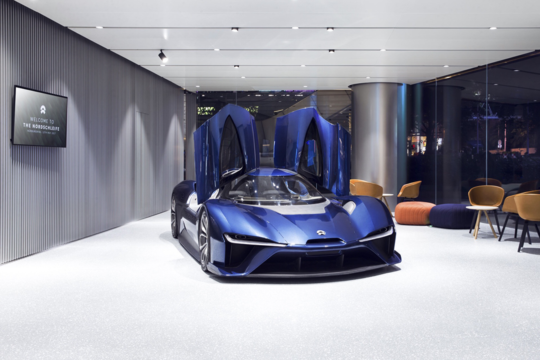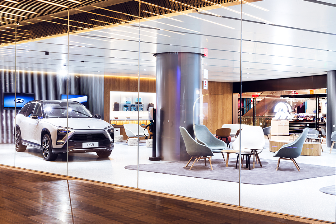 Gallery部分位于中心一楼,主要用来展示品牌、产品,今天这里就摆放着帅气的电动超跑EP9以及蔚来的首台量产车ES8。