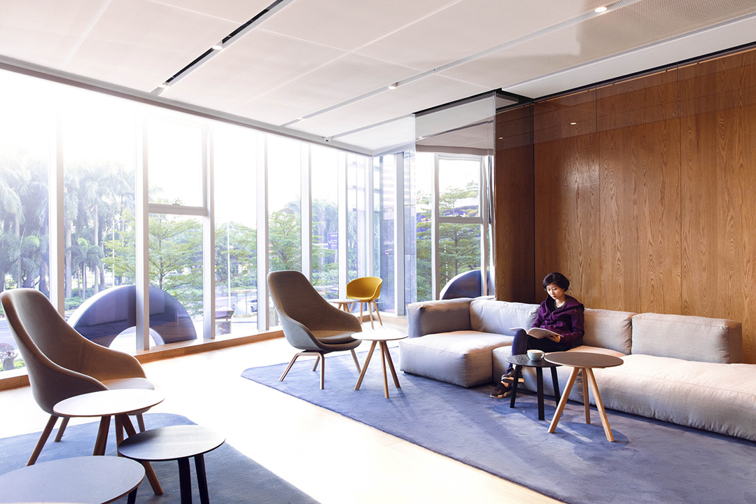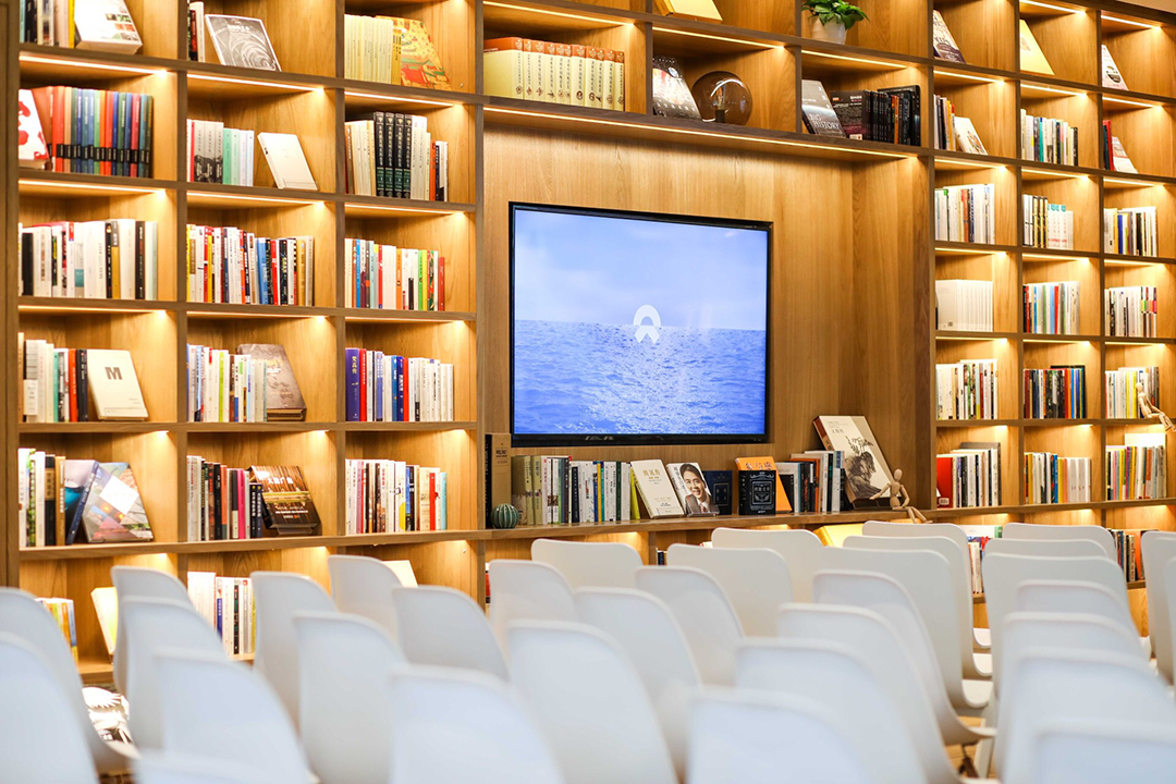 有布局温暖的会客厅,用户们可以坐下喝杯咖啡、看看窗外绝美的街景;也有与图书馆结合在一起的讲坛,能够自由地取阅图书、分享心得;另外还有共享办公和会议空间以及吧台。