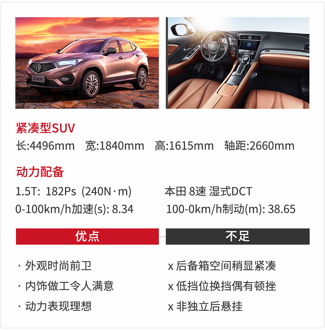 钻石五边形繁星式格栅、造型凌厉的灯具及富有张力的车身曲线,好一只蓄势待跳的金蟾。全系标配LED大灯、可变阻尼主动悬挂等配置颇为厚道,但却因非独立后悬而常被揶揄是飞度平台、缤智拉皮,真是有冤难诉。由于羸弱的品牌力,在华处境与BBA相比可用一句话形容:如果一支球队的每一场比赛都是客场,那么球员多半得疯了,而CDX面对的就是这样的赛程。