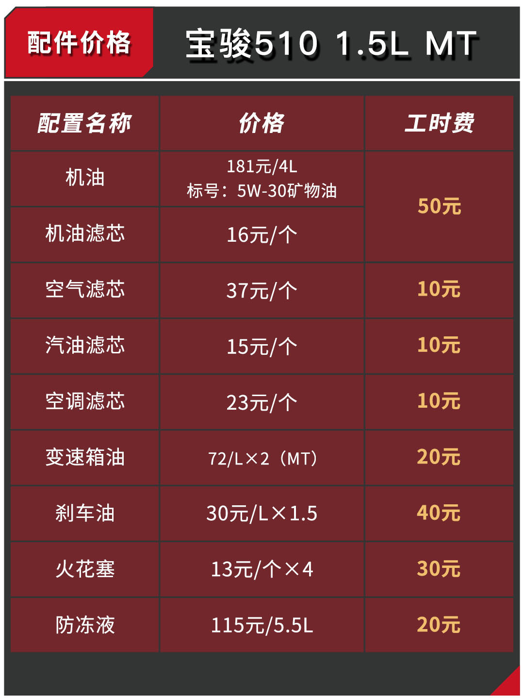 小结:宝骏510作为自主品牌的好处表现得淋漓尽致,无论是配件价格还是工时费都足够便宜,相信这也是自主品牌能够快速崛起的缘故,对比之下合资品牌由于成本控制、利润的考量都需要面临各方面的协调。