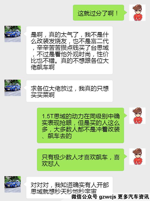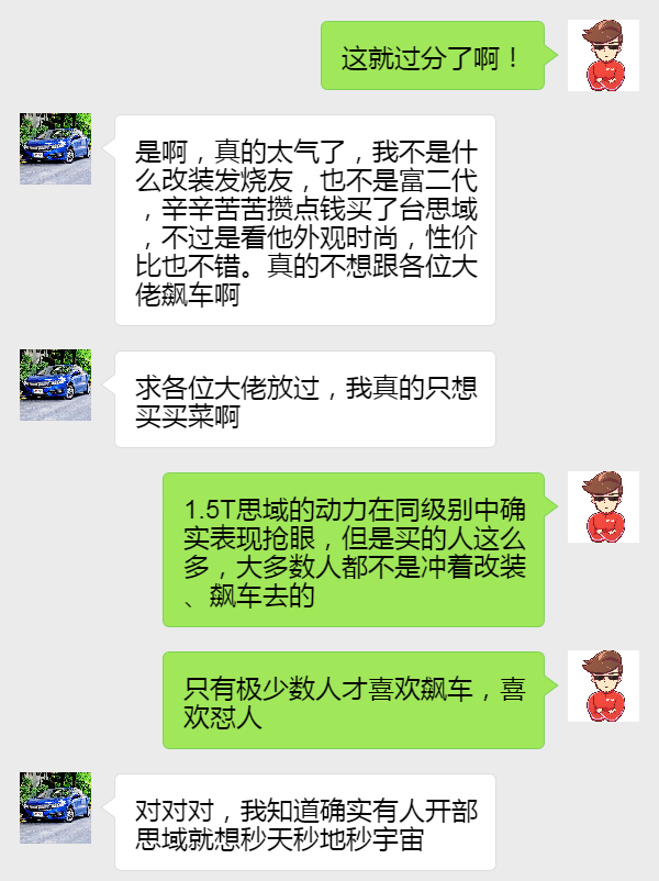 飙车的思域车主有吗?当然有,而且由于思域出色的加速性能,可能喜欢改装、飙车的思域车主比例会比其他车的车主比例要高一些,但是他们只是几十万思域车主中的极少数,希望大家不要把对这些飙车车主的怨念发泄到普通的思域车主身上,一起创造更加理智、文明、和谐的交通环境。