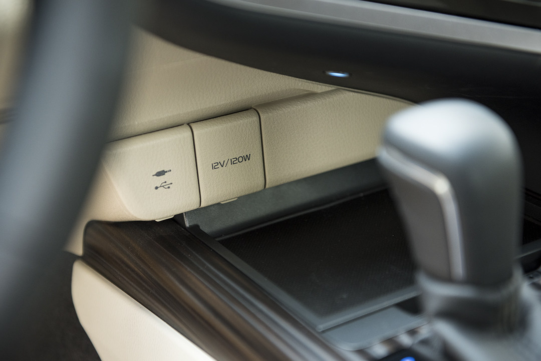 尽管很多按键、空调出风口以及装饰面板的布局都一样,但设计师运用不少精妙的设计细节告诉你它有多么与众不同,设计得美观的同时还讲求了人机工程学,诸如USB充电口的布局设计,并不会妨碍其他按键的操作,同时下方的储物格还能方便藏好线束和便于手机防滑,细节得人心。