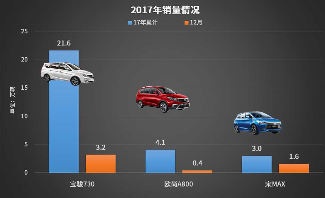 首先来看销量,宝骏730的销量成绩一向非常养眼,2017年积累销量突破20万辆。而9月份才上市的宋MAX销量直线飙升,在12月份高达1.6万辆左右。相比之下,欧尚A800的表现就显得一般了。