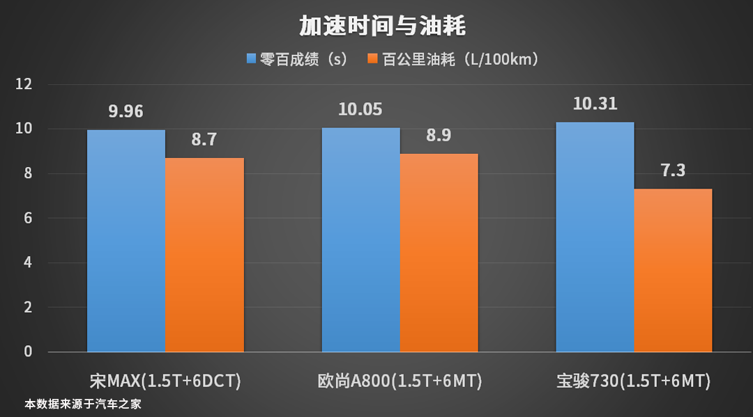装载能力有了,但动力是否给力呢?选出三车主销车型的0-100km/h加速时间与车主平均油耗数据: