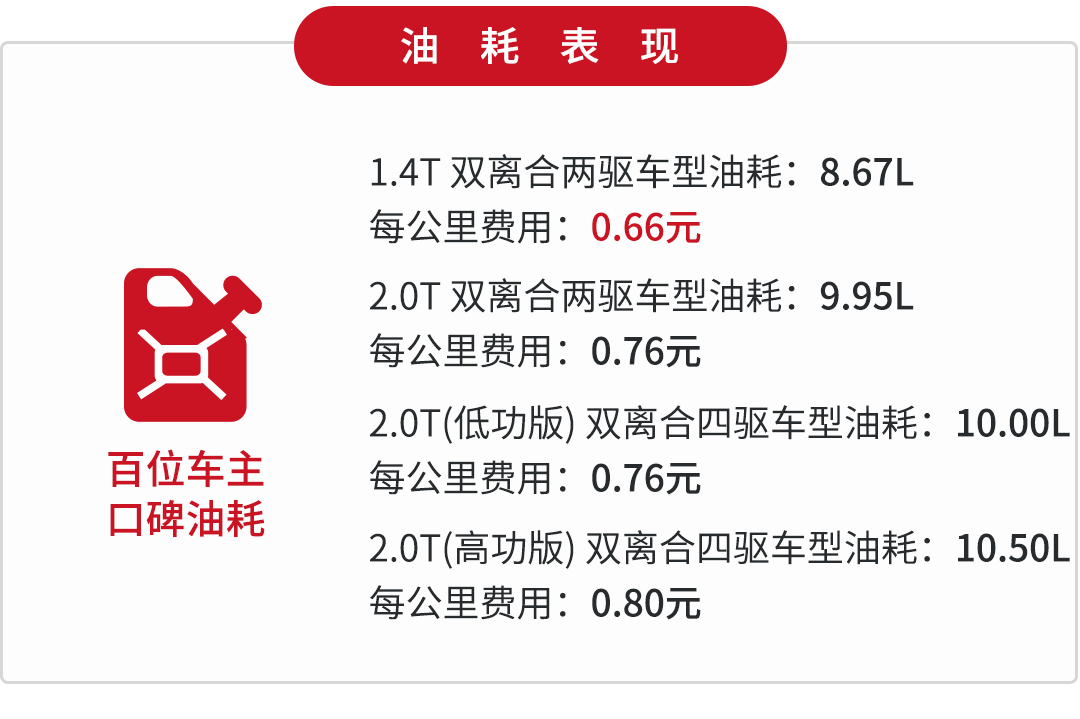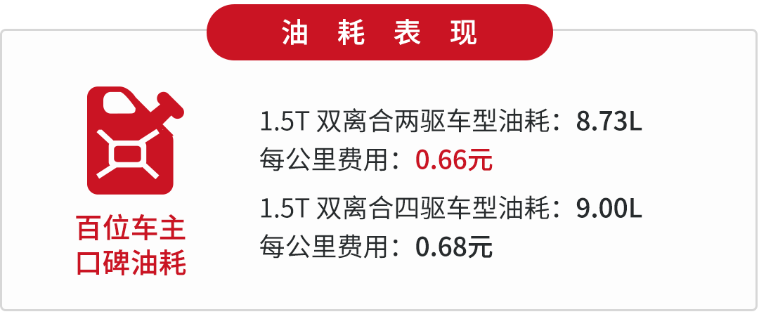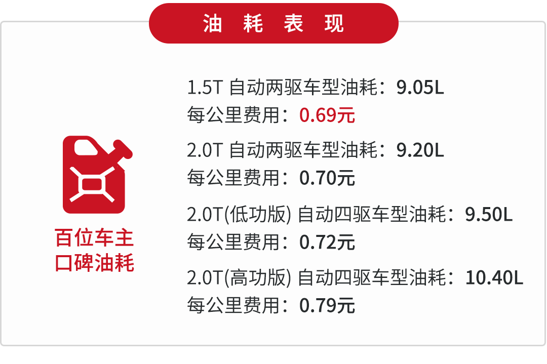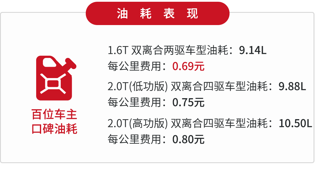 得益于这个变速箱带有液力变矩器,所以换挡时能做到又快又顺,同时又兼具双离合传动效率高的特点。两驱车型的整备质量在1494-1500kg,而四驱车型则去到了1587-1630kg,控制得还算合理,较好地提升了燃油经济性。