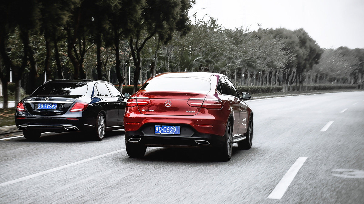幸运的是我的任务是和同事开着北京奔驰E级和GLC轿跑SUV可以去远点的地方拍点文章配图,所以来到了广州大学城,这里也是很多在广州的汽车媒体从业者钟意的拍摄地之一。