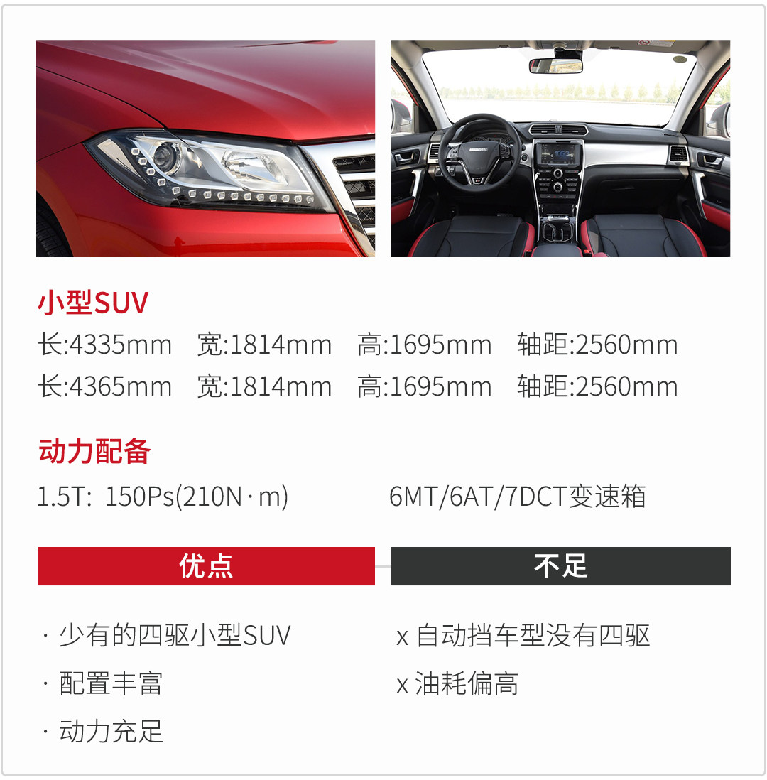 哈弗H2去年销量突破二十万辆,不幸的是并没有夺得小型SUV冠军,被性价比奇高的宝骏510夺去了,不过哈弗H2的实力也不是盖,也有着许多小型SUV比不上的地方,就比如四驱结构,自主品牌带四驱系统的小型SUV仅此一款,采用来自博格华纳的适时四驱,中央差速器为多片离合器,四驱性能虽说不上强大,但聊胜于无,面对冬天尤其北方地区的雨雪路滑天气或者一些泥泞道路可以增多一份安全感,H2四驱车型共5款,9-11万不等。