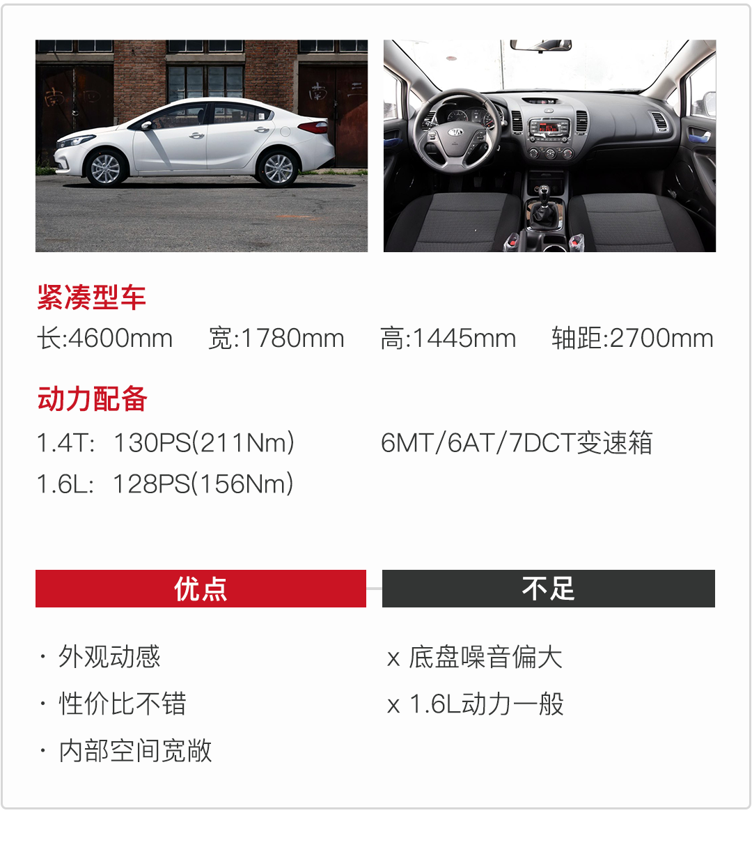 内饰设计上K3虽然不如它的外观那么动感,但是也并不过时;同时,这个车还有着很丰富的配置和较大的市场优惠,在部分地区自动挡车型的裸车价甚至已经低于10万,对于一款标准的合资紧凑型轿车来说这样的价格,性价比真心突出。