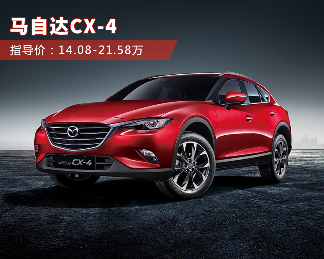 马自达CX-4最让人印象深刻的地方莫过于那个造型动感的外观了,CX-4轿跑式的外观设计非常具有运动感,修长的车身硕大的轮毂以及高高的窗线都给它营造了一种跑车般的动感。细长的大灯悬浮式的A柱也使得它具有不错的精致感和设计感,更加出色的是CX-4的价格还比较便宜,它的起售价仅仅14.08万,这个价格比大众凌渡还要低;虽然说CX-4后排空间小一点但是漂亮的外观、高高的离地间隙以及实惠的价格,CX-4还真没有太多让人拒绝的理由。