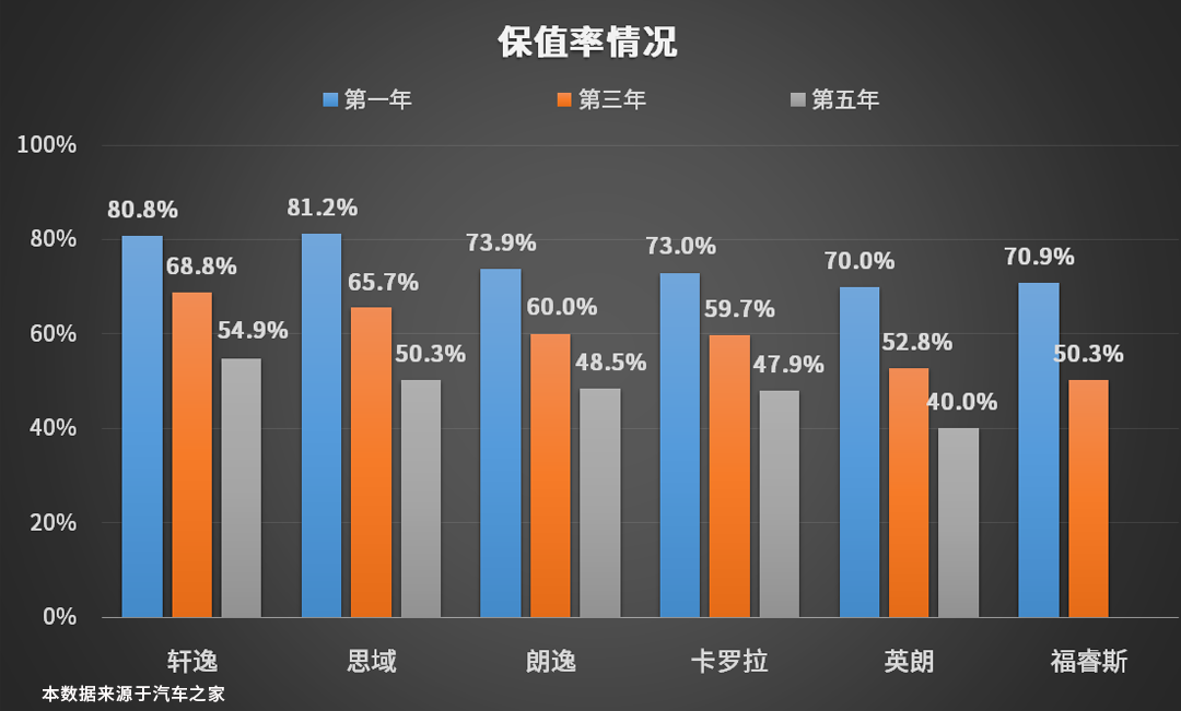 小雅说数据:在大家印象中日系车一向比较耐用可靠、省油经济,这些优点帮它们获得大量的保有量以及良好的口碑,所以轩逸、思域、卡罗拉的保值率都不会差。