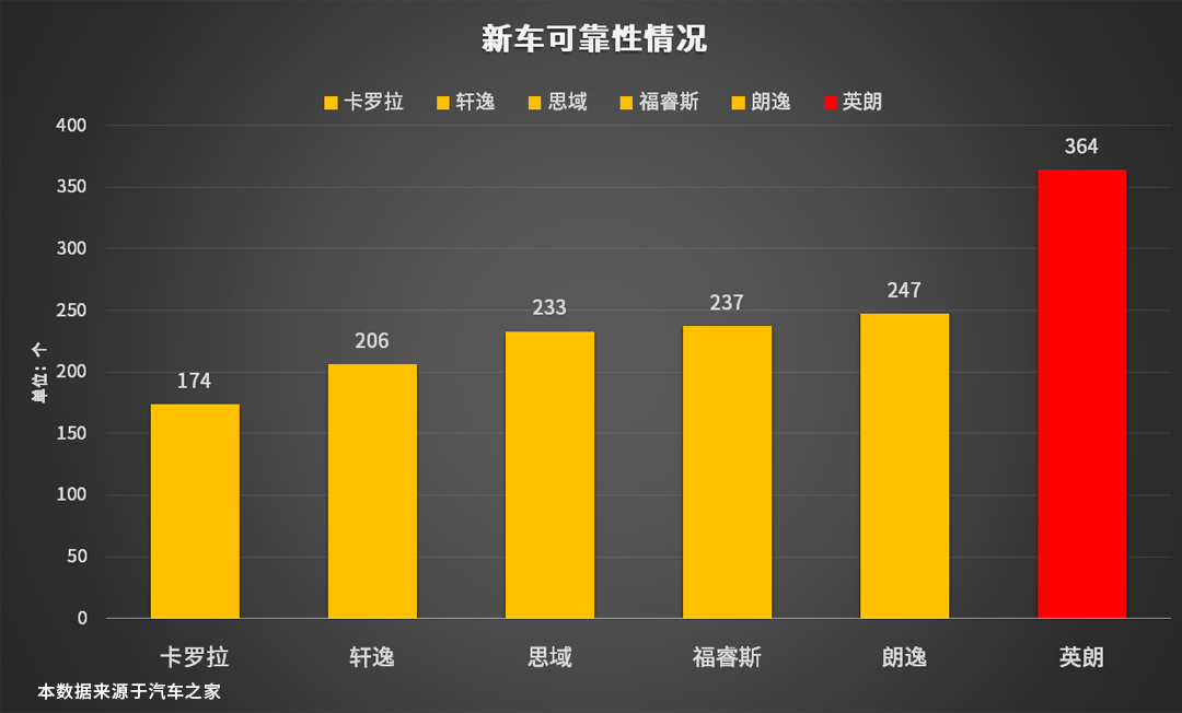 小雅说数据:卡罗拉果然是皮实耐用的最典型代表,轩逸的可靠性也不错,而英朗最明显的问题在于刹车异响、仪表盘异响以及空调开启后发动机无力等。