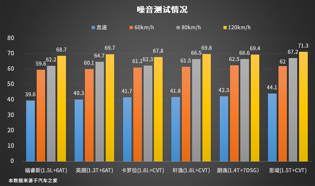 小雅说数据:福睿斯与英朗在隔音方面打造得不错,思域在高速时噪音较为明显,卡罗拉、轩逸以及朗逸则处于中等水准。说到这,相信不少网友在意三缸发动机的抖动问题,想了解详情的朋友们请关注我们后续的文章!
