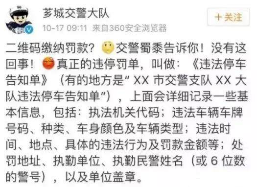 7、交警开具的罚单目前还没有二维码扫码缴纳罚款的功能,因此这大大的二维码将骗子暴露无遗!