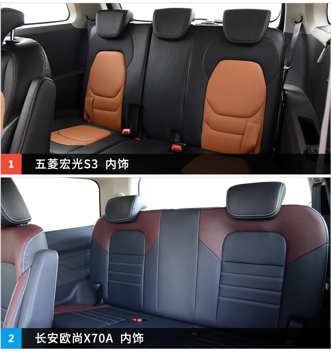 同样,五菱宏光S3的第三排座椅也支持完全放倒,能形成一个平整、宽敞的后备厢空间,但长安欧尚X70A只支持折叠,扩展空间有限。