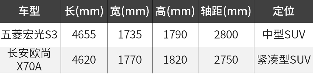 通过表格,咱们不难发现两款车型在尺寸上都各占一些优势,可是在车型定位方面,五菱宏光S3是一款中型SUV,定位要高于作为紧凑型SUV长安欧尚X70A,但谁的实际空间表现更出色?