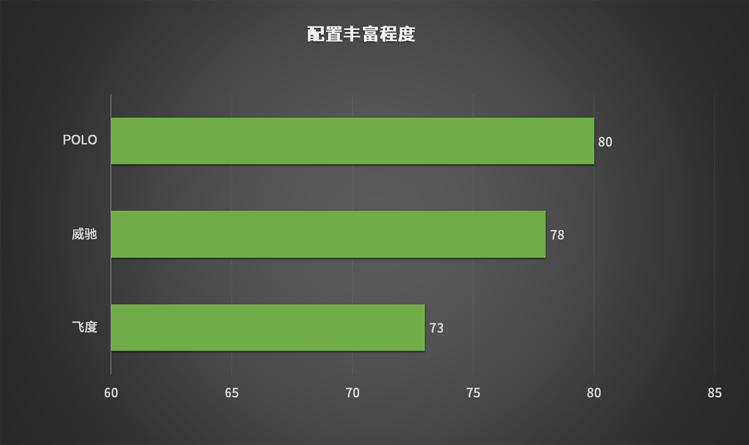 本田空间最大化理念让飞度拥有较为宽敞的乘坐空间与灵活的储物空间,威驰的表现次之,相比之下POLO的表现最差,头部与腿部空间都不太理想。