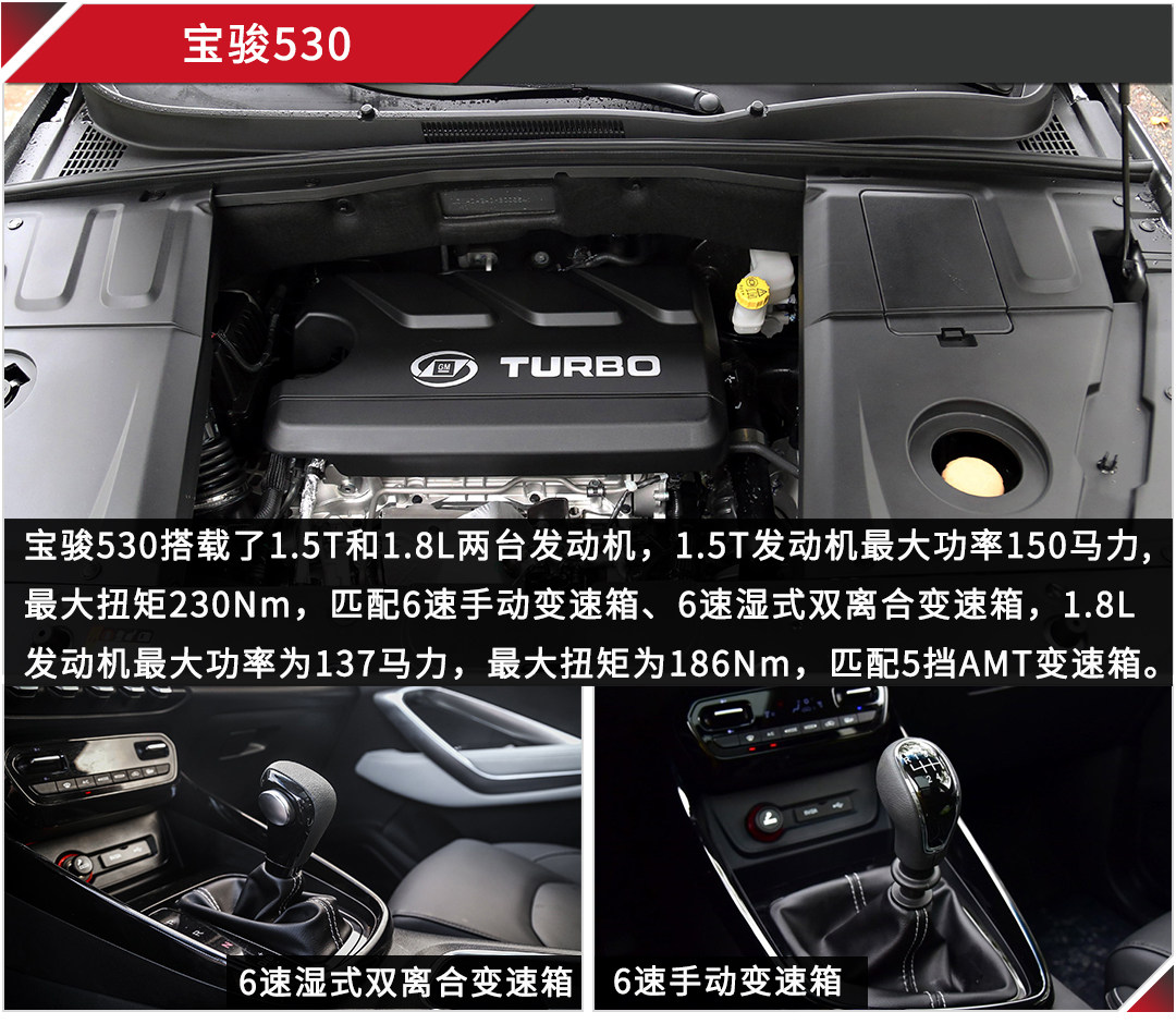 动力方面,宝骏530将搭载1.5T和1.8L两台发动机,其中1.5T发动机最大功率为150马力,最大扭矩为230Nm,匹配6速手动变速箱及6速湿式双离合变速箱;1.8L发动机匹配的则是5速AMT变速箱。这两套动力总成在宝骏560上也是比较熟悉了,性能输出、燃油经济性以及耐用口碑都相当不错。