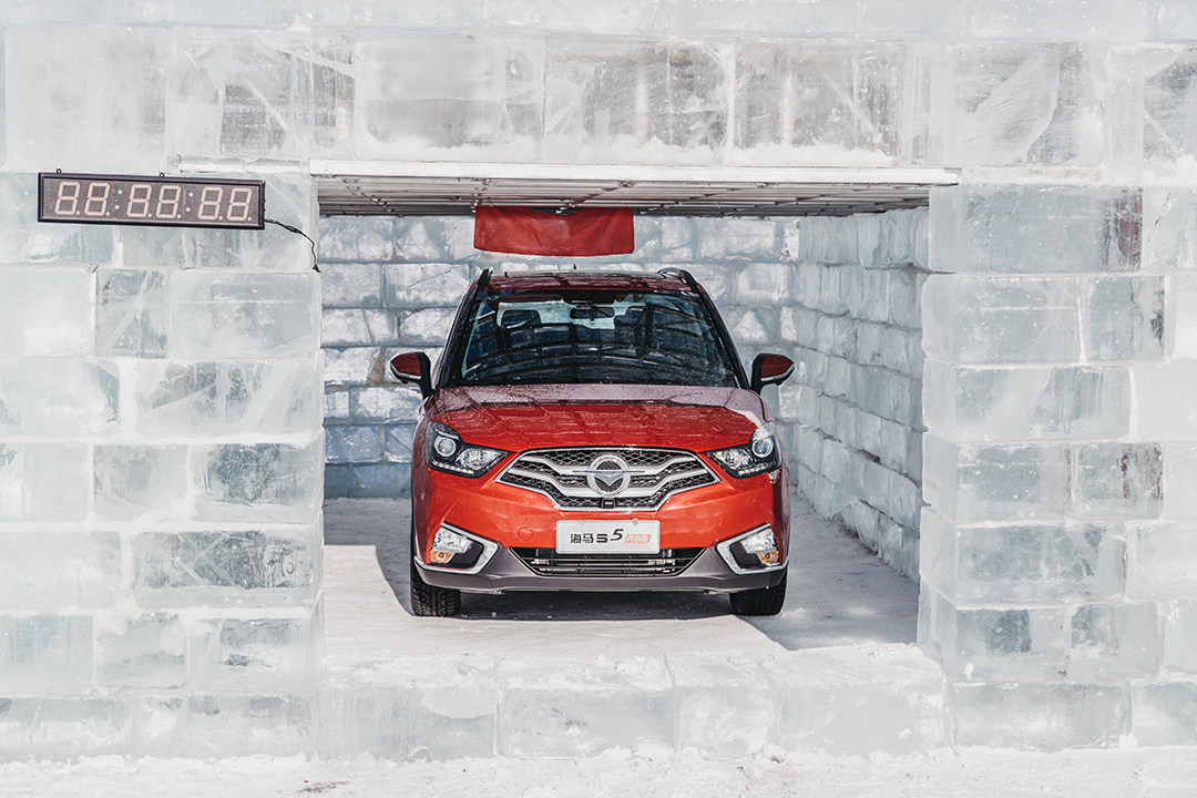 在封闭冰屋中,海马S5青春版经受48小时极寒考验后破冰而出,跟随车队进行近300km道路试驾,其可靠品质可见一斑。