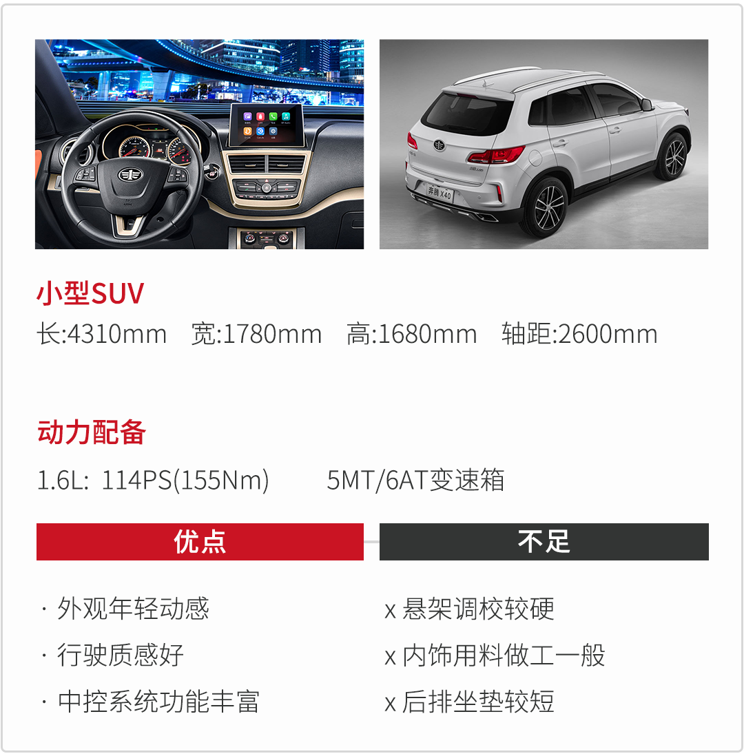 在动力系统上,X40全系仅提供1.6L自然吸气发动机,匹配5挡手动或来自爱信的6速手自一体变速器,在实际驾驶中,1.6L+6AT的动力组合输出线性,变速器换挡平顺,逻辑也不错,较硬的悬架调校则带来了清晰的路感和良好的支撑性,但是舒适性会打折扣,总之,这台小型SUV在驾驶层面上给人的感受非常不错。