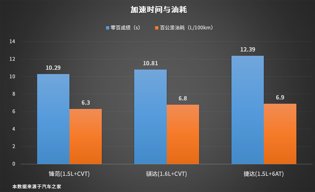 锋范的1.5L+CVT车型拥有10.29秒加速成绩,同时还能将百公里油耗控制在6升左右,这实力有点吓人,并且油门踏板初段灵敏,动力输出线性,变速箱表现得很平顺,虽然少了几分驾驶乐趣但开起来也是挺轻快的。