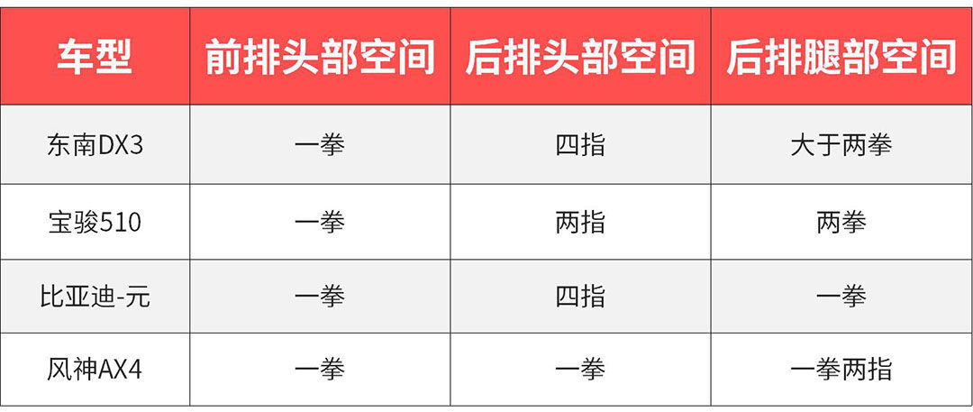 上文我们没有聊到空间和动态表现,一味强调设计和配置,其实是因为这些小型SUV几乎都是定位于年轻人市场,而且在这个级别里,基于成本的控制,动力配备都设定为比较一般的水平,不过在此前实测的结果中,部分车型也略带惊喜。由于针对年轻人,空间要求因人而异,最后我们列出空间表现的实测数据,希望能对你有参考价值。