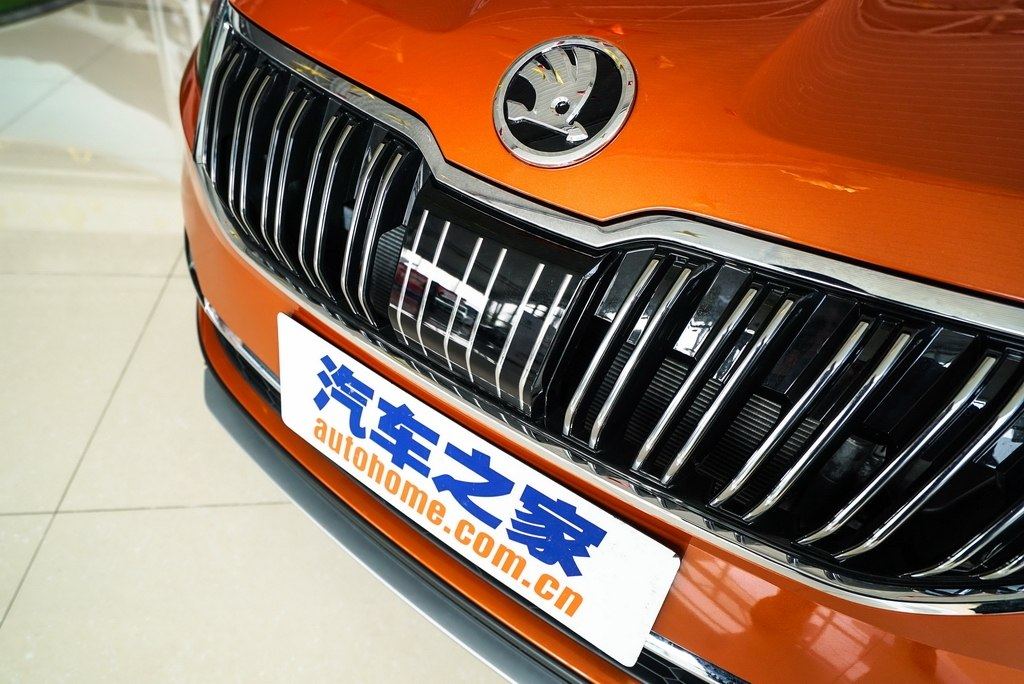 车头采用了和柯迪亚克类似的纵向格栅,在这台顶配车型上还能看到ACC自适应巡航雷达的存在。分体式头灯是近年来斯柯达旗下新车的标志,全LED大灯也能在这台展车上见到。