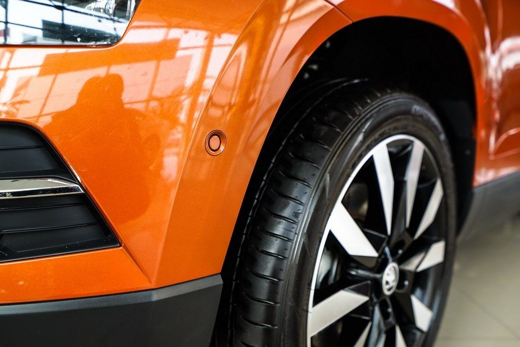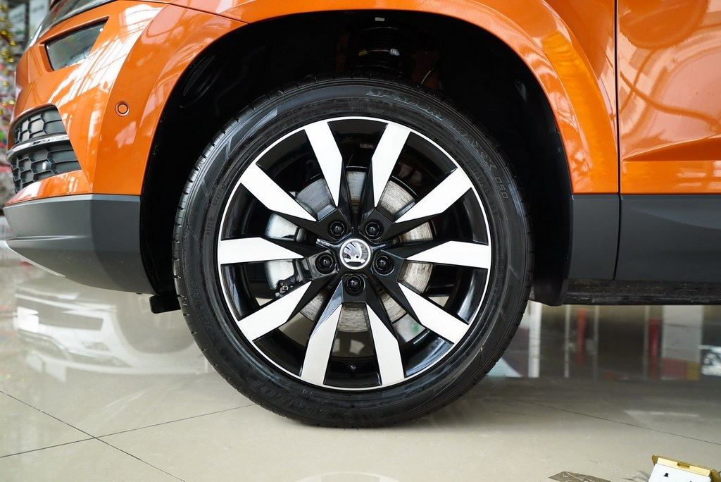 车身外部配置方面,我们看到这台柯珞克配备了前置雷达、自动泊车侧方探头、仿捷克国旗设计的车侧Logo、无钥匙进入以及车顶行李架等配置。