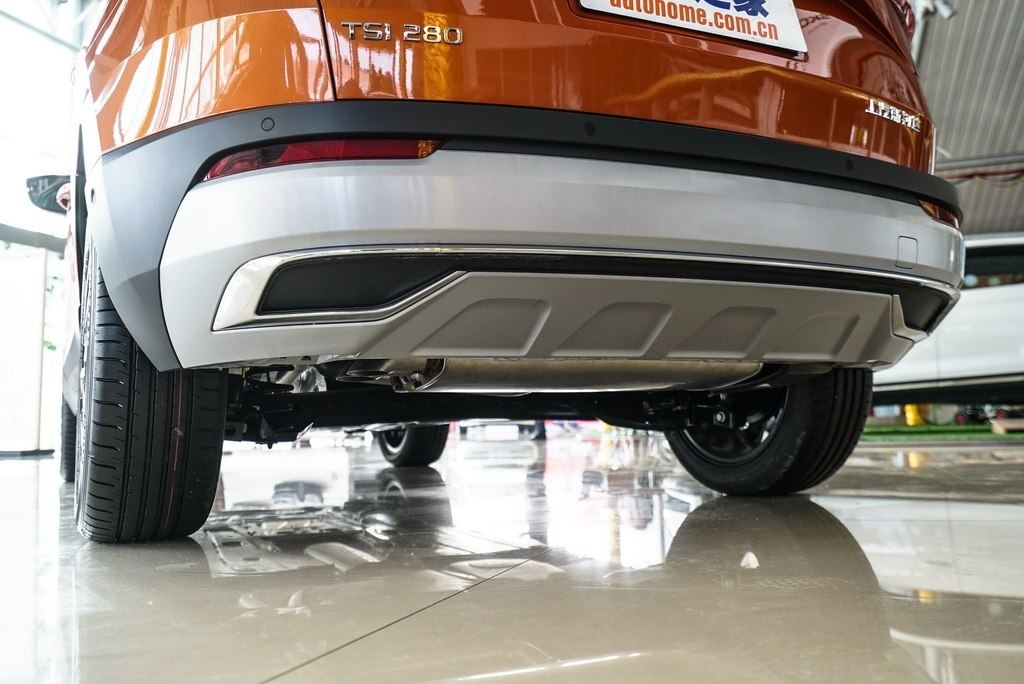 后保险杠下方也设计了类似排气管装饰罩的样式,但实际上柯珞克采用的是单边共两出式的结构,排气管是隐藏式的设计。此外,车尾我们还可以见到倒车影像。