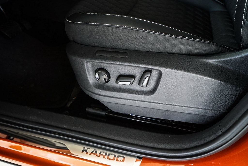 座椅的造型很时髦,而且颇有运动座椅的感觉。靠背和坐垫部分采用菱形织物,主驾驶提供多向电动调节,副驾驶则为手动座椅,前排提供了两组电加热功能。