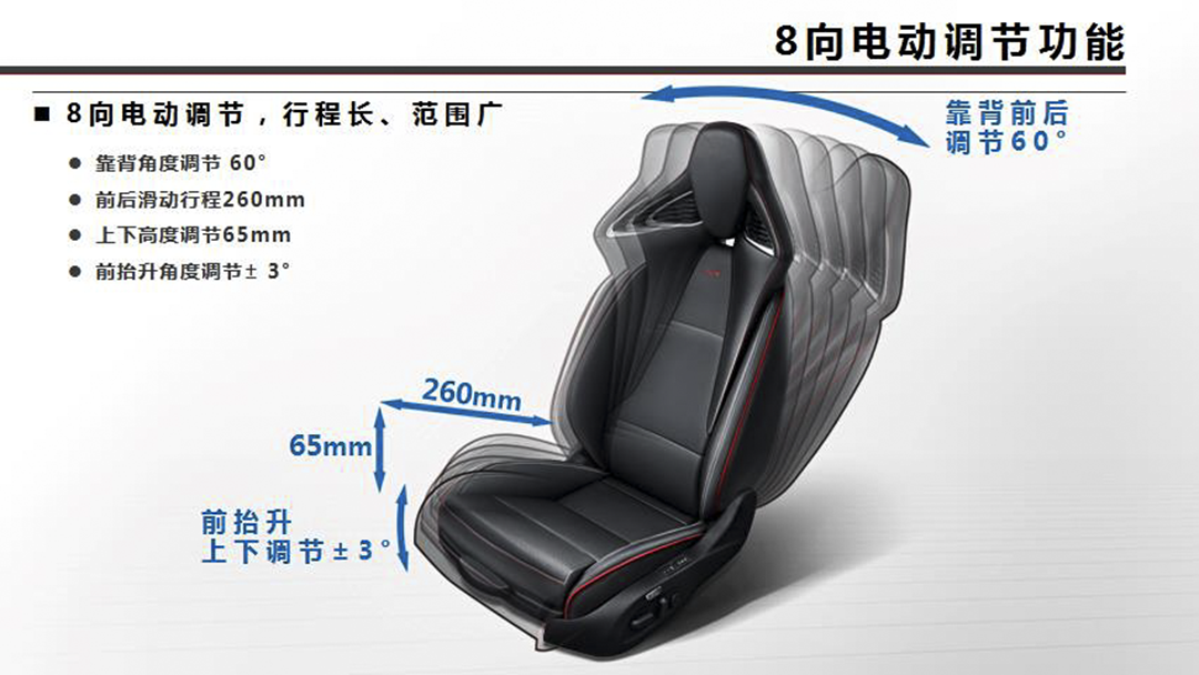 上面如此人性化的功能出现在一款运动型车身上已经是挺罕见的了。可除了符合人体工程学的造型与功能设计,加热、通风、按摩、记忆等多种人性化舒适配置都没有缺席。