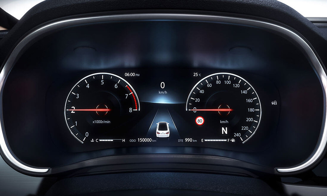 全液晶仪表也是内饰的亮点之一,分辨率很高,界面设计合理,左侧可以调节显示各种行车信息。