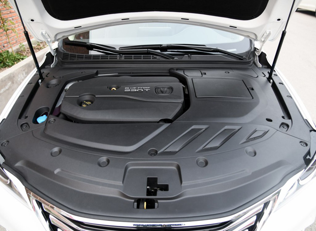 打开发动机盖,发动机舱被大面积塑料包裹,视觉效果很规整,包在塑料盖板下的1.5T涡轮增压发动机最大马力156PS,峰值扭矩225N·m,搭配爱信第三代6AT变速箱,技术成熟。虽然1.5T的发动机给不了你太强的动力,但是正常平缓驾驶的时候足够应付你日常使用,变速箱换挡顺滑,没有出现闯动的现象。