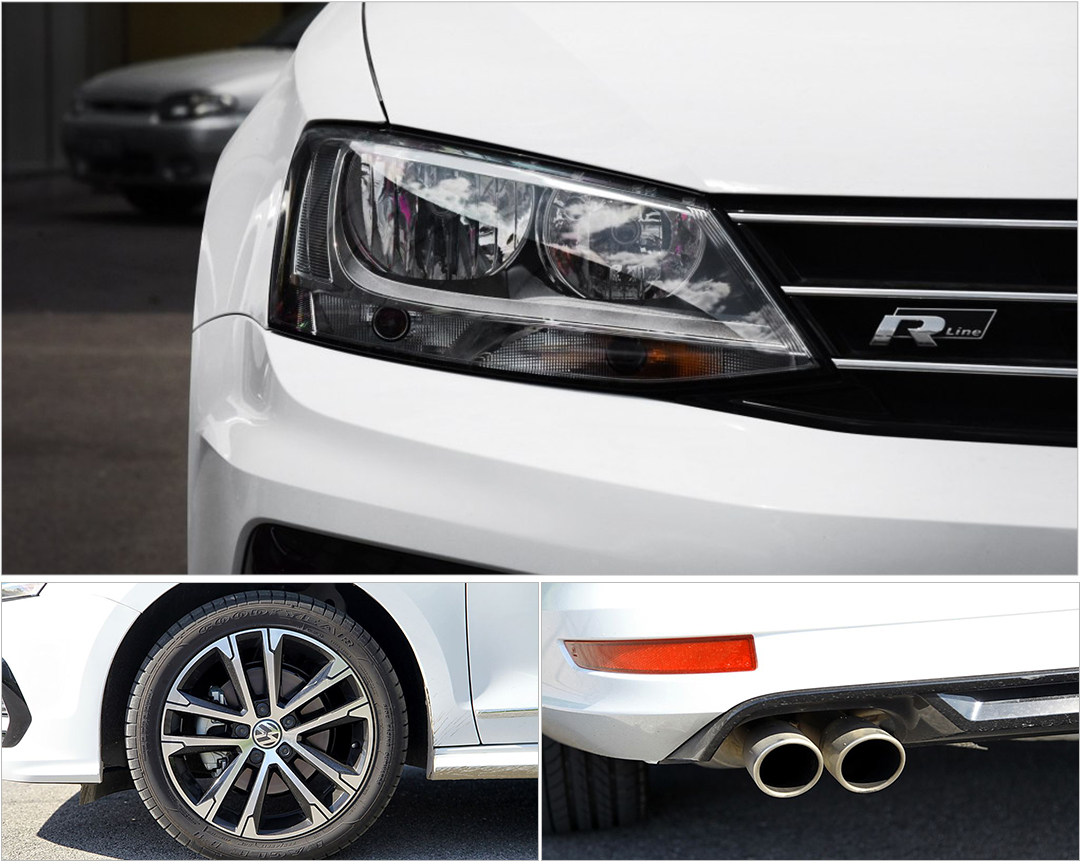 进气格栅和翼子板均有一个“R-line”专属标识来识别其身份,并且采用17英寸R-Line专属运动设计铝轮辋,视觉效果一流,排气管为双边共双出,用镀铬装饰,不过是隐藏式的。