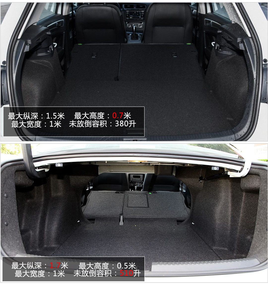 所以从后备厢空间装载能力和乘坐空间方面考虑的话,速腾R-line作为家用车的表现更好一些,虽然高尔夫的后备厢可扩展性不错,但是座椅空间方面输了一截。