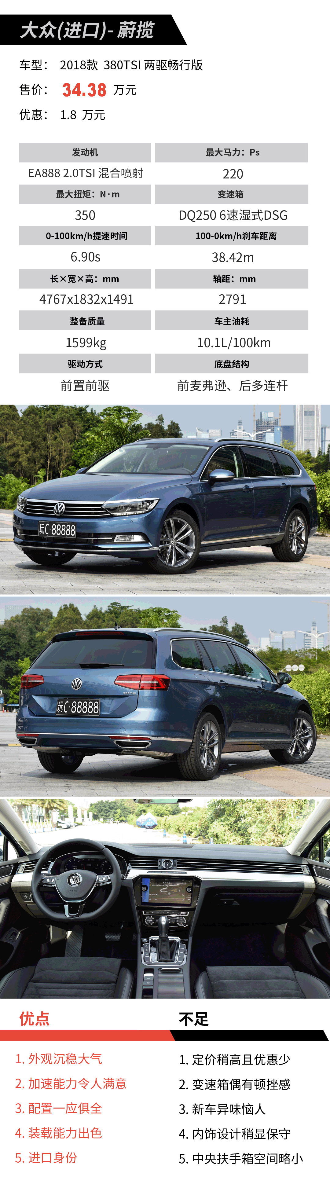 修长俊秀的“瓦罐”外观,配以大众保守又不失档次的内饰,高级感油然而生。低扭表现有力的DSG换挡足够迅速,辅以动力充沛的2.0T发动机及精准的转向系统,穿插车流游刃有余。后尾箱容量扩展后可达1780L,装载能力比之SUV更甚。但不够亲民的售价恐怕难以让“瓦罐”情怀落地。