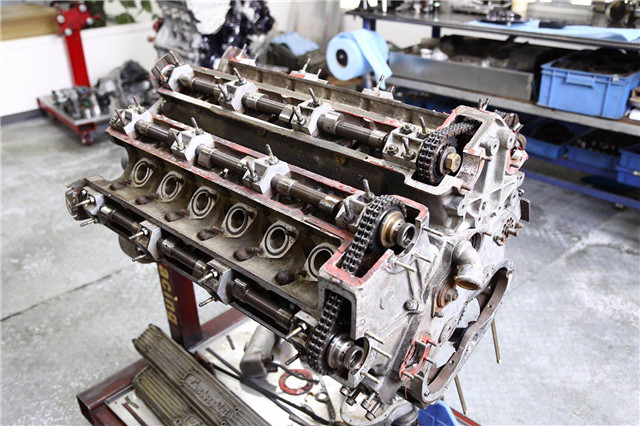 它采用的是全铝材质,加上六个双腔下通风式韦伯化油器,四根凸轮轴,双油泵以及两个马鞍形油箱,以可以保证它对于食物的渴求。而它启动的过程也十分原始,准备好化油器的工作状态,旋转启动键,让发动机发出呛咳的声音,“突突突”......2、4、6、12,直至所有汽缸全部开始工作,这台V12才会开始它的捶胸演奏。