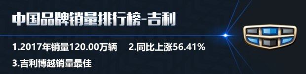 ◆ 2017年中国品牌销量第一名——吉利汽车