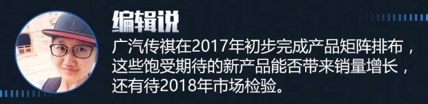 广汽传祺在去年年底公布产品计划时明确提到,将会在2018年推出四款新车,其中广汽传祺GA4已在北美车展后正式上市销售,其余三款车型预计为全新一代传祺GS5、新款传祺GS4、广汽传祺GM6。从产品布局来看,传祺在各级别车型中的产品投放已逐渐形成矩阵,新款传祺GS4和全新传祺GS5都是能够为广汽传祺销量带来爆点的SUV产品,未来有望成为传祺品牌销量的中流砥柱;在家用MPV领域,各家车企均处于探索阶段,传祺GM6能否一炮而红还难下定论,有待日后观察。